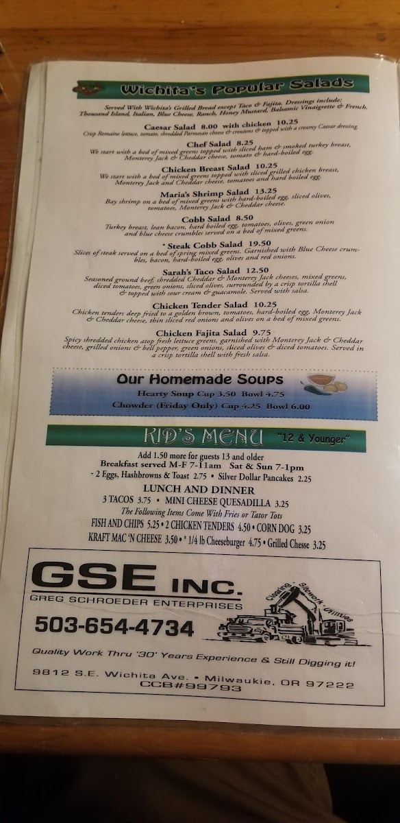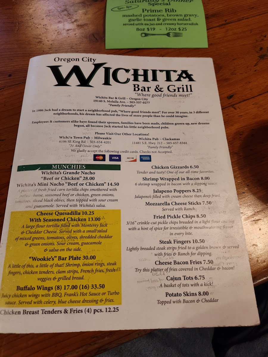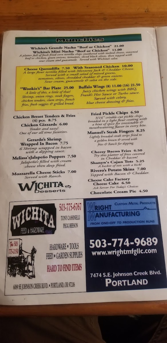 Wichita Bar & Grill Menu